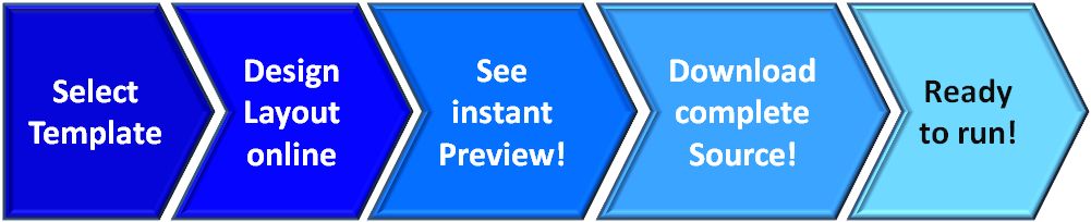 For larger web applications I recommend using PHP. You need an application framework, the GGF Framework to execute the generated PHP classes. Please refer to the GGF Framework Site for more information how to download the framework. I recommend following the link "Architecture" and reading how the framework works, how you can download and setup an execution environment either on your own PC or on a web server in the Internet.