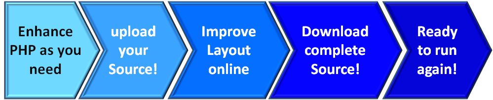 delivers structured HTML code (in future server-side PHP source code too) that can be included into your own applications. Enhancements like