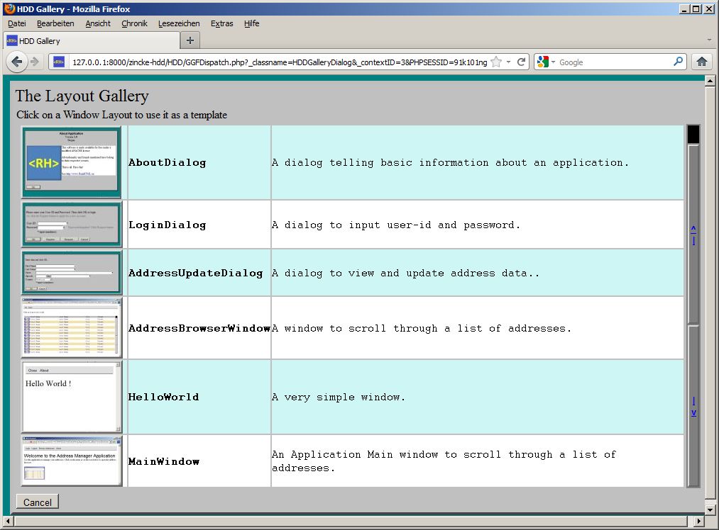 There is no need to know (much) about HTML to utilize the tool. The ReinHTML Dialog Designer generates a HTML file that implements a dialog form and triggers CGI scripts (for instance in Perl) that process input data and react on user interactions. For instance you can specify for each button, which script should be called when the button is pressed (callback function).But from the same source you can also generate PHP. Generation of server side PHP code that fills dialogs with data and reads and checks form input data. For each window or dialog a class is generated, that generates all necessary HTML elements generiert and contains event-handler functions that implement the functionality behind active user interface controls(Buttons, Menus, Hyperlinks).