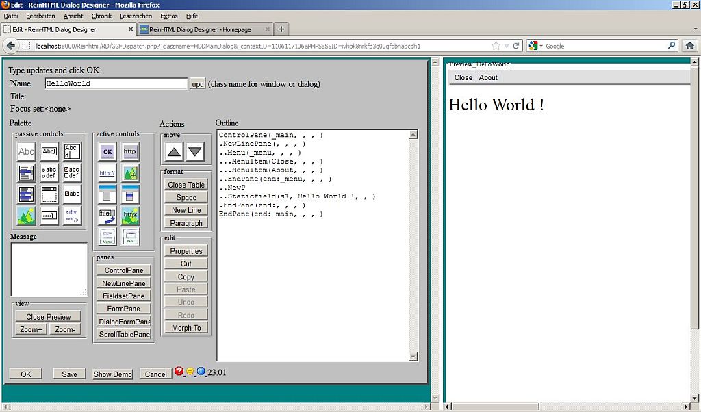 Welcome to the ReinHTML Dialog Designer !